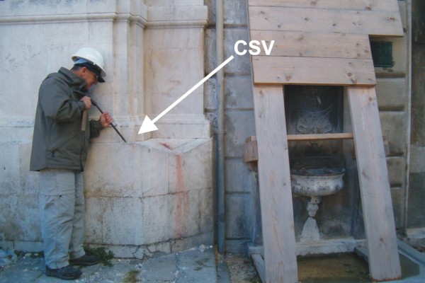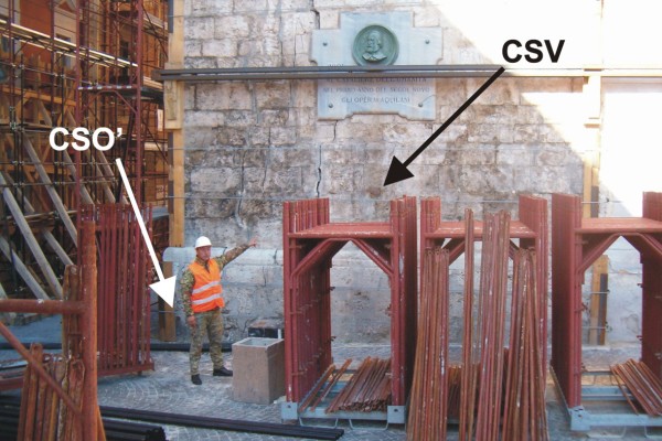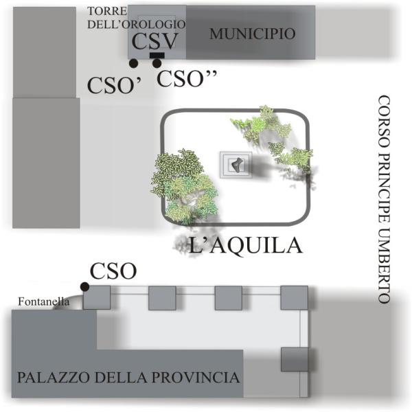 [{"simbolo_contrassegno":"B1","materializzazione":"(CSO) – Bullone infisso alla base della torre dell'orologio, sul lato che volge alla piazza, sull'ultima pietra che f\u00e0 da spigolo."},{"simbolo_contrassegno":"B3","materializzazione":"(CSO') – Cerchio inciso in spigolo al pilastro pi\u00f9 a destra del palazzo della Provincia"},{"simbolo_contrassegno":"V3","materializzazione":"(CSV) – Piastrina fissata sul muro in pietra della torre sotto la lapide."},{"simbolo_contrassegno":"B5","materializzazione":"(CSO\") – Resti di un disco impiombato locato sul cordolo in pietra al di sotto la lapide con l'effige di G. Garibaldi (non misurato)."}]