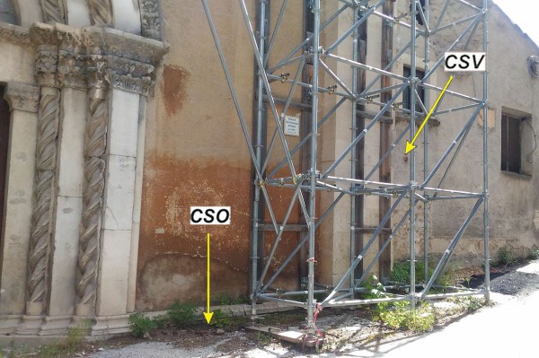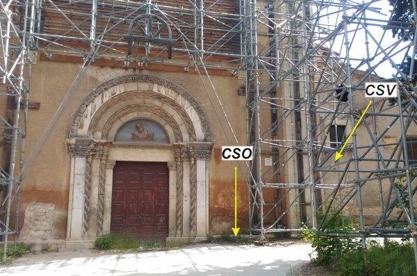 [{"simbolo_contrassegno":"P3","materializzazione":"(CSO) – Pozzetto ubicato a destra del portone d'ingresso alla chiesa."},{"simbolo_contrassegno":"V1","materializzazione":"(CSV) – Mensola posta sotto la prima finestra della canonica adiacente alla chiesa."}]