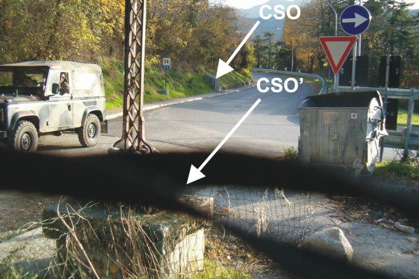 | Contrassegni | [{"simbolo_contrassegno":"B1","materializzazione":"(CSO) – Bullone infisso in un plinto di calcestruzzo posto a 10 m dal Km 36."},{"simbolo_contrassegno":"B4","materializzazione":"(CSO') – Centrino universale infisso sulla faccia superiore del basamneto in cemento del crocifisso in ferro, spigolo sinistro, in via S. M. degli Angeli."}] |