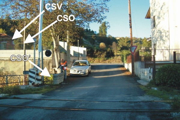 [{"simbolo_contrassegno":"B1","materializzazione":"(CSO) – Bullone infisso nel plinto dell'asta del passaggio a livello, superficie laterale rivolta alla strada S.S.17"},{"simbolo_contrassegno":"P3","materializzazione":"CSO') – Pozzetto ubicato sul marciapiede della casa Cantoniera, a sinistra della finestra di destra, a circa 20 cm dal muro."},{"simbolo_contrassegno":"V1","materializzazione":"(CSV) – Mensola posta sulla facciata della cantoniera, spigolo destro, del corpo pi\u00f9 alto del fabbricato."}]