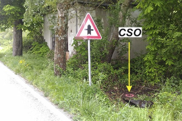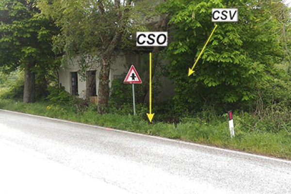 [{"simbolo_contrassegno":"P3","materializzazione":"(CSO) – Pozzetto ubicato all'interno, nell'angolo destro del muricciolo di cinta."},{"simbolo_contrassegno":"V1","materializzazione":"(CSV) – Mensola posta sulla facciata dell'edificio in prossimit\u00e0 dello spigolo destro."}]