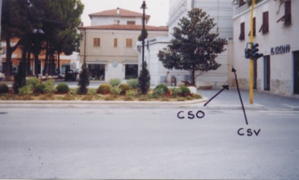 [{"simbolo_contrassegno":"B1","materializzazione":"(CSO) Bullone infisso nella parete laterale destra della Chiesa, in prossimit\u00e0 dell'angolo formato con l'edificio adiacente."},{"simbolo_contrassegno":"V1","materializzazione":"(CSV) Mensola infissa nella stessa parete, in corrispondenza del CSO."}]