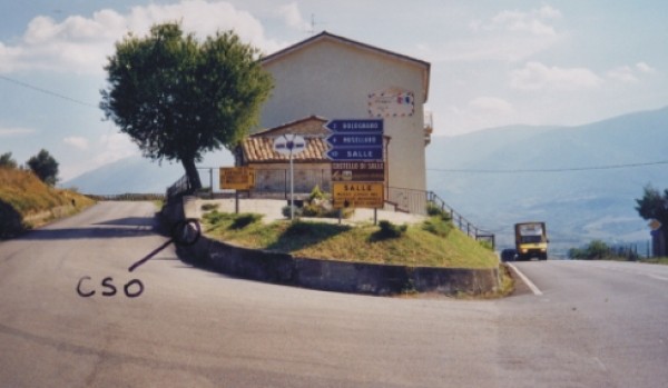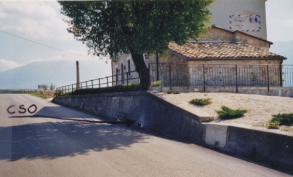 [{"simbolo_contrassegno":"B1","materializzazione":"(CSO) Bullone infisso sul muro di contenimento a sinistra della casa posta al bivio per Bolognano."},{"simbolo_contrassegno":"B4","materializzazione":"(CSO') Bulloncino Inox di tipo GPS infisso sul muro di contenimento di fronte al bivio, a destra della strada, in direzione di Popoli."}]
