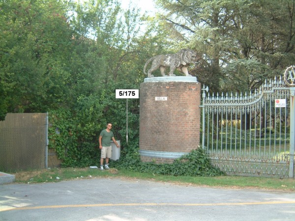 [{"simbolo_contrassegno":"B2","materializzazione":"(CSO) Chiodo anonimo infisso sulla testata del muretto in mattoni, a sinistra del pilastro di sinistra del cancello di ingresso."},{"simbolo_contrassegno":"P4","materializzazione":"(CSO') Pozzetto di IV Categoria al margine del marciapiede in cemento, alla base della facciata della portineria."}]