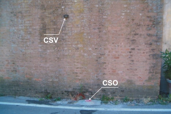 | Contrassegni | [{"simbolo_contrassegno":"P4","materializzazione":"(CSO) Pozzetto di IV Categoria rialzato con tubo in pvc e protetto da tappo in ghisa posto alla base del campanile a 2 m dallo spigolo di destra."},{"simbolo_contrassegno":"V2","materializzazione":"(CSV) Piastrina a barilotto infissa sul muro del campanile in corrispondenza del CSO."}] |