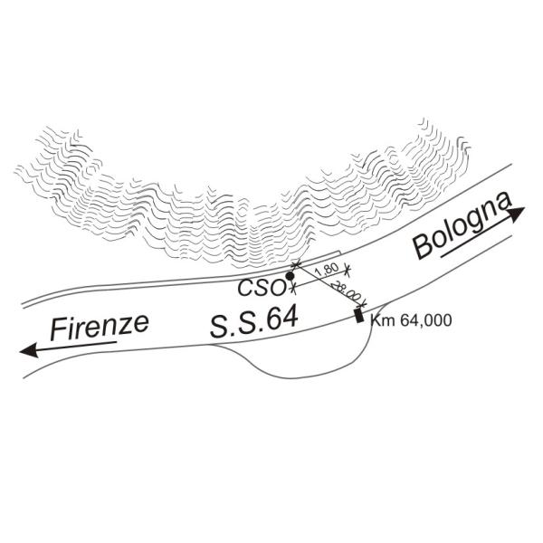 | Contrassegni | [{"simbolo_contrassegno":"B1","materializzazione":"(CSO) Bullone infisso nel muretto di sostegno a monte della strada, nei pressi del chilometro 64,000"}] |