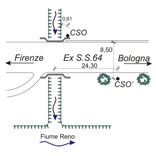 | Contrassegni | [{"simbolo_contrassegno":"B1","materializzazione":"(CSO) Bullone infisso nella spalla sinistra del ponticello lato monte"},{"simbolo_contrassegno":"P4","materializzazione":"(CSO') Pozzetto di IV Categoria situato in prosimit\u00e0 della piazzola ad arco, a 0.50 m dal margine della strada"}] |