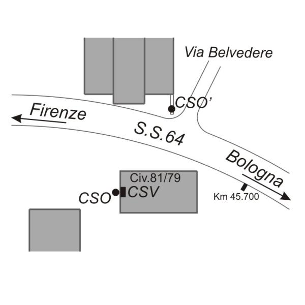 | Contrassegni | [{"simbolo_contrassegno":"B1","materializzazione":"(CSO) Bullone infisso nel centro della parete rivolta a Porretta del negozio per lattonieri \" Massimo e Alex s.n.c. \""},{"simbolo_contrassegno":"B4","materializzazione":"(CSO') Chiodo universale orizzontale infisso sul muretto a destra dell'ingresso con il civico 170"},{"simbolo_contrassegno":"V1","materializzazione":"(CSV) Mensola infissa sulla stessa parete in corrispondenza del CSO"}] |