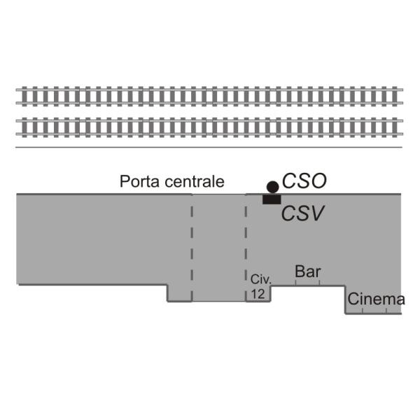 [{"simbolo_contrassegno":"P4","materializzazione":"(CSO) Pozzetto di IV Categoria cementato alla base della facciata, lato binari, a sinistra della porta centrale"},{"simbolo_contrassegno":"V2","materializzazione":"(CSV) Piastrina a barilotto infissa sulla stessa facciata a sinistra della porta suddetta"}]