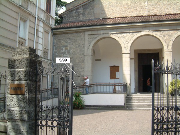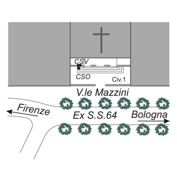 [{"simbolo_contrassegno":"B1","materializzazione":"(CSO) Bullone a muro ENEA cementato sulla facciata della chiesa a sinistra del portico"},{"simbolo_contrassegno":"V2","materializzazione":"(CSV) Piastrina a barilotto cementata sulla facciata della chiesa a sinistra degli archi del portico"}]