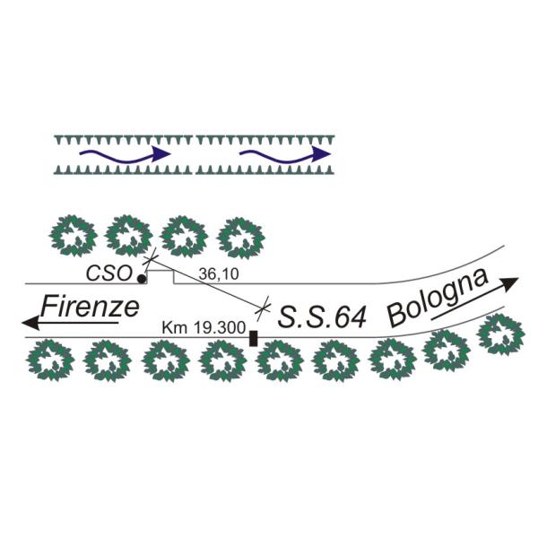 | Contrassegni | [{"simbolo_contrassegno":"P4","materializzazione":"(CSO) Pozzetto di IV Categoria cementato al lato sinistro della strada, direzione Bologna, nei pressi dell'angolo Sud tra la piazzola ed il ciglio stradale."}] |