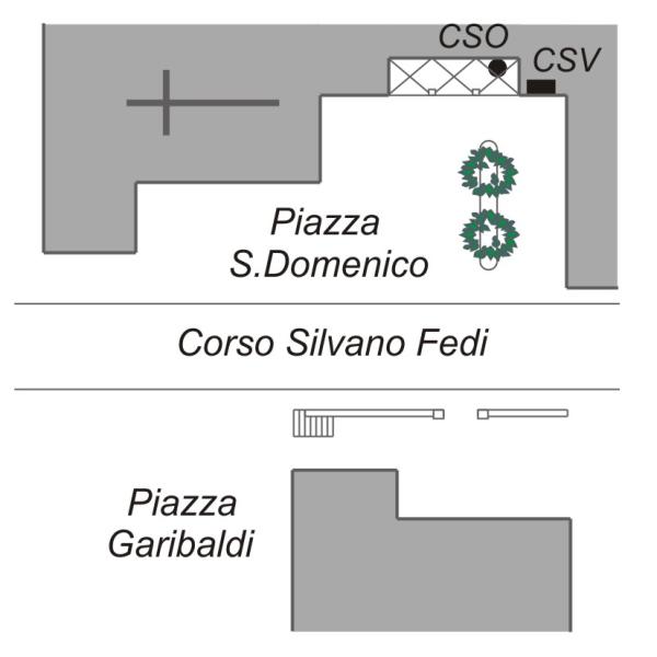 | Contrassegni | [{"simbolo_contrassegno":"P4","materializzazione":"(CSO) Pozzetto di IV Categoria cementato sotto il loggiato in corrispondenza dell'angolo destro"},{"simbolo_contrassegno":"V2","materializzazione":"(CSV) Piastrina a barilotto infissa sulla facciata esterna, a destra del primo arco del loggiato suddetto"}] |