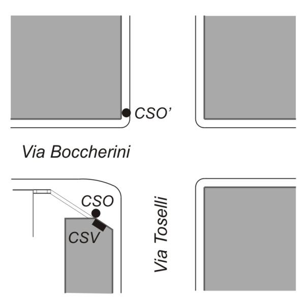 [{"simbolo_contrassegno":"B1","materializzazione":"(CSO) Bullone infisso sulla facciata obliqua del bar presso lo spigolo destro"},{"simbolo_contrassegno":"V2","materializzazione":"(CSV) Piastrina a barilotto infissa sulla facciata obliqua del bar, a destra della vetrina"},{"simbolo_contrassegno":"P4","materializzazione":"(CSO') ( non quotato ) Pozzetto di VI categoria in cemento, (coperto da asfalto) presso lo spigolo della gastronomia prospicente via Toselli ."}]