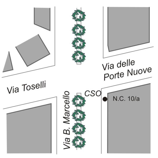 [{"simbolo_contrassegno":"B1","materializzazione":"(CSO) Bullone infisso presso lo spigolo sinistro della facciata prospiciente Via B. Marcello del fabbricato al civico 10 A"}]