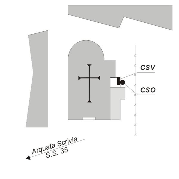 [{"simbolo_contrassegno":"P3","materializzazione":"(CSO) Pozzetto in ghisa alla base del campanile in mezzeria"},{"simbolo_contrassegno":"V2","materializzazione":"(CSV)-Piastrina a barilotto infissa sulla parete del campanile, in corrispondenza del CSO"}]