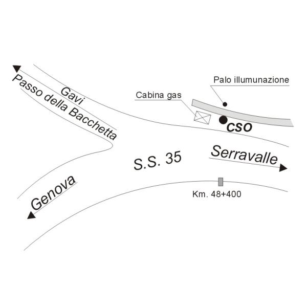 | Contrassegni | [{"simbolo_contrassegno":"B1","materializzazione":"(CSO) Bullone in ghisa infisso nel muro di sostegno a sinistra della S.S. n\u00b035 in direzione Serravalle, in corrispondenza del palo illuminazione"}] |