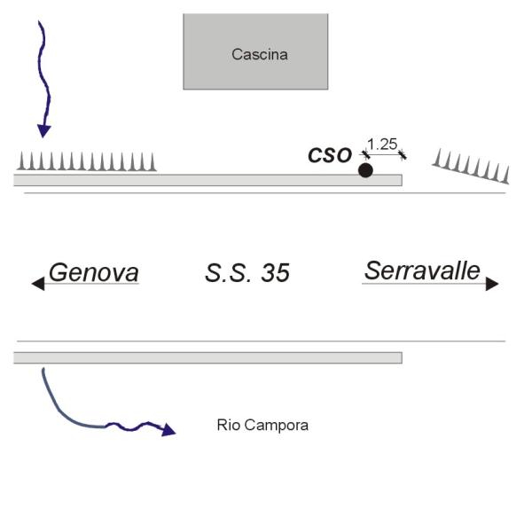 | Contrassegni | [{"simbolo_contrassegno":"B1","materializzazione":"(CSO) Bullone in ghisa infisso a m 1.25 dallo spigolo destro del parapetto del cavalcavia sul rio Campora, lato sinistro S.S. n\u00b035 in direzione Serravalle, facciata esterna rispetto alla strada"}] |