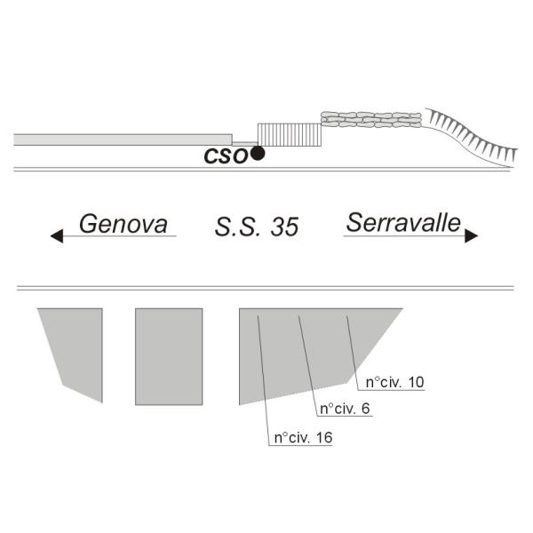 | Contrassegni | [{"simbolo_contrassegno":"B1","materializzazione":"(CSO) Bullone in ghisa infisso nel muro di sostegno a sinistra della strada in corrispondenza della 13.ma alzata della scala, lato sinistro S.S.35 in direzione Serravalle"}] |
