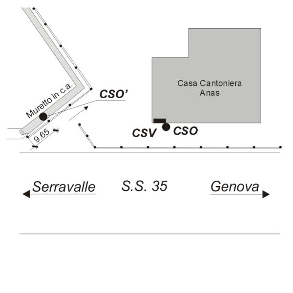 | Contrassegni | [{"simbolo_contrassegno":"B1","materializzazione":"(CSO) Bullone in ghisa infisso presso lo spigolo sinistro della facciata fronte strada della casa cantoniera, lato destro S.S. 35 in direzione Serravalle"},{"simbolo_contrassegno":"B4","materializzazione":"(CSO')-Chiodo GPS infisso sulla testa del muro a sinistra della casa cantoniera sotto il guard-rail"},{"simbolo_contrassegno":"V1","materializzazione":"(CSV)-Mensola infissa sulla facciata del fabbricato in corrispondenza col CSO"}] |