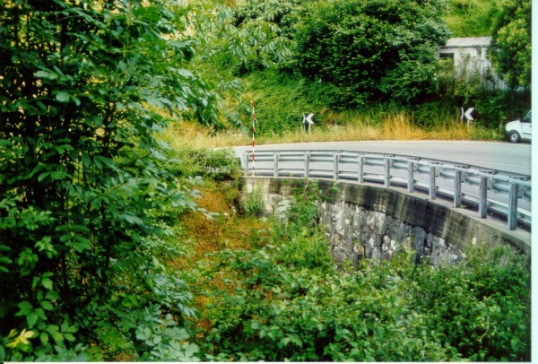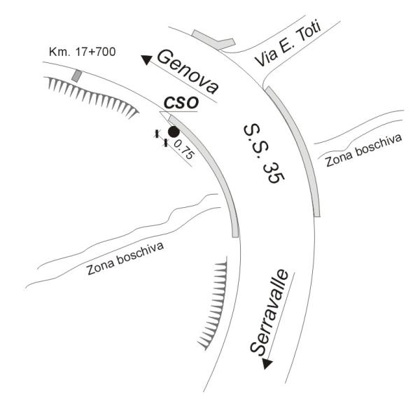 | Contrassegni | [{"simbolo_contrassegno":"B1","materializzazione":"(CSO) Bullone in ghisa cementato all'inizio del muro di sostegno all'interno della curva sul ponte."}] |