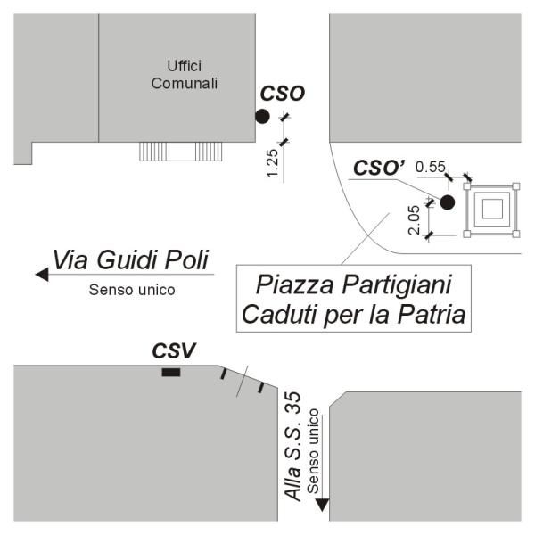 | Contrassegni | [{"simbolo_contrassegno":"B1","materializzazione":"(CSO) Bullone in ghisa infisso a m 1.25 dallo spigolo sinistro della facciata destra del fabbricato"},{"simbolo_contrassegno":"B4","materializzazione":"(CSO')-Chiodo GPS infisso sulla pavimentazione davanti alla facciata del monumento ai caduti rivolta verso il palazzo comunale"},{"simbolo_contrassegno":"V1","materializzazione":"(CSV)-Mensola infissa sulla facciata del fabbricato antistante il palazzo comunale, a destra dell'ingresso all'oratorio"}] |