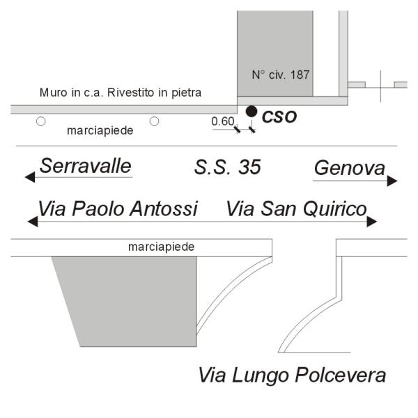 | Contrassegni | [{"simbolo_contrassegno":"B1","materializzazione":"(CSO) Bullone in ghisa infisso alla base del muro di sostegno in pietra in prossimit\u00e0 del civico n\u00b0187, a destra della risega"}] |