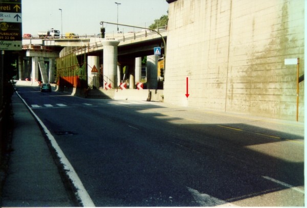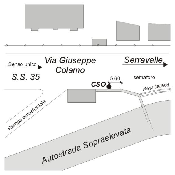 | Contrassegni | [{"simbolo_contrassegno":"B1","materializzazione":"(CSO) Bullone in ghisa infisso sul muro di sostegno in c.a. che separa l'autostrada sopraelevata dalla strada statale, in prossimit\u00e0 del semoforo, lato destro di via G.Colano in direzione Serravalle"}] |