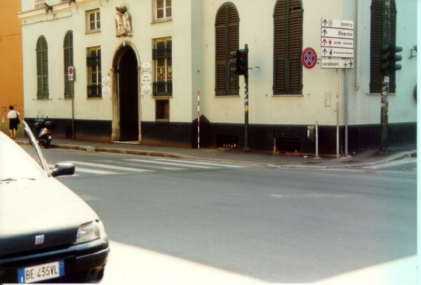 | Contrassegni | [{"simbolo_contrassegno":"P3","materializzazione":"(CSO) Pozzetto in ghisa posto alla base della facciata nell'angolo formato dalla risega a destra dell' ingresso"},{"simbolo_contrassegno":"V3","materializzazione":"(CSV)-Piastrina in ghisa infissa sul pilastro a destra della scala di accesso ai piani superiori. (NON QUOTATO NELL'ANNO 2001)"}] |