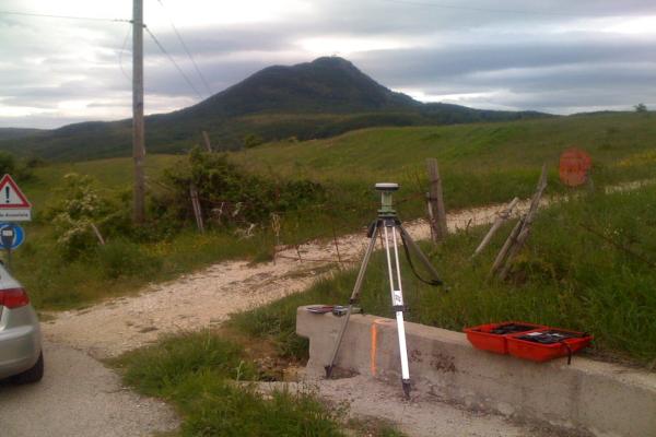 | materializzazione | Centrino metallico orizzontale di tipo chiodo con rondella ARPAB Regione Basilicata infisso sulla testa del cordolo in calcestruzzo. |