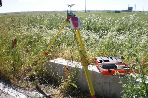 Centrino metallico orizzontale di tipo chiodo con rondella ARPAB Regione Basilicata infisso sulla testa del cordolo in calcestruzzo.
