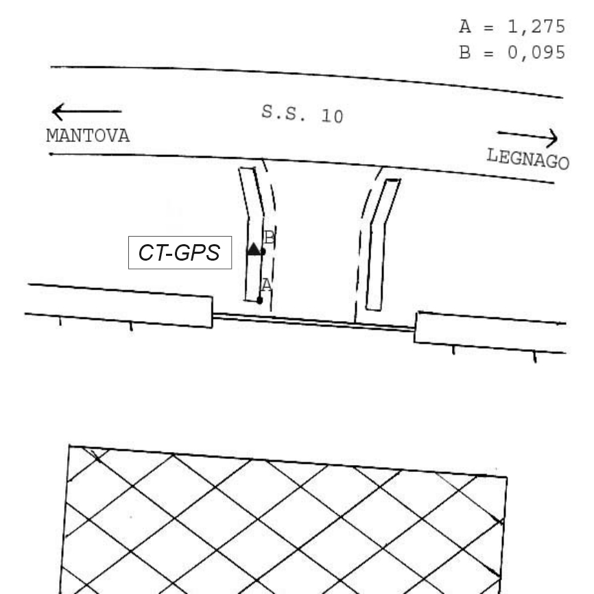 | materializzazione | Centrino Regione Lombardia infisso sul cordolo in calcestruzzo del tombino, lato ovest, dell'ingresso alla fabbrica sul fosso di scolo, al Km. 303,750 della S.S.10, prima di arrivare a Castel d'Ario provenendo da Mantova. |