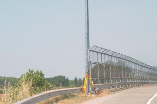 Centrino Regione Lombardia infisso sullo spigolo sud-est del cordolo in calcestruzzo del cavalcavia 98 sulla A22, in località Canedole.
