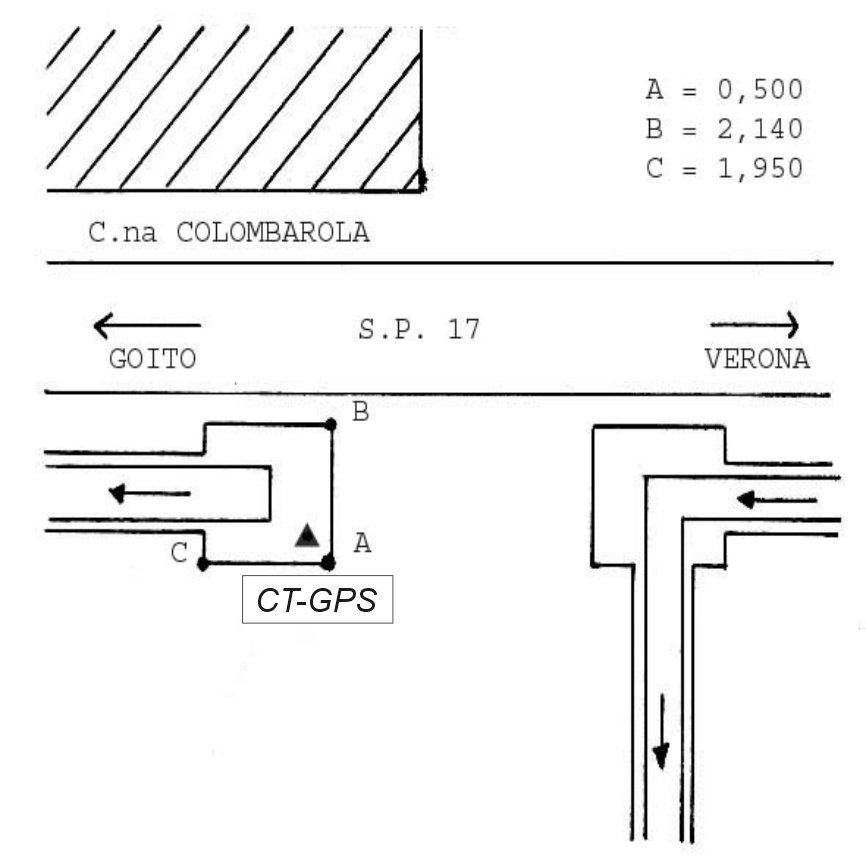 | materializzazione | Centrino Regione Lombardia infisso sullo spigolo sud-est del sifone in calcestruzzo di un accesso campestre, lungo la canaletta d'irrigazione che fiancheggia la S.P. 17, al Km. 18,100, di fronte a Cascina Colombarola. |