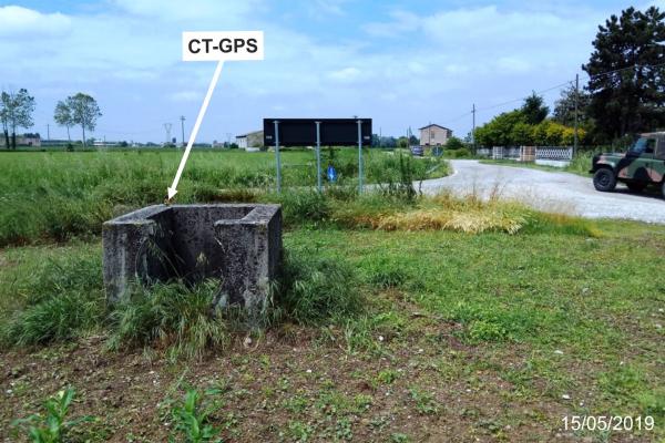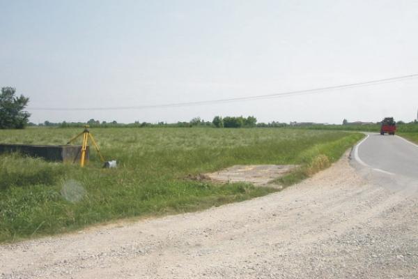 Centrino Regione Lombardia infisso sulla sommità, spigolo sud-est, del sifone in calcestruzzo della S.P. 15 che collega Guidizzolo a Ceresara, in corrispondenza del Km. 3,250, in località Cascina Trenta.
