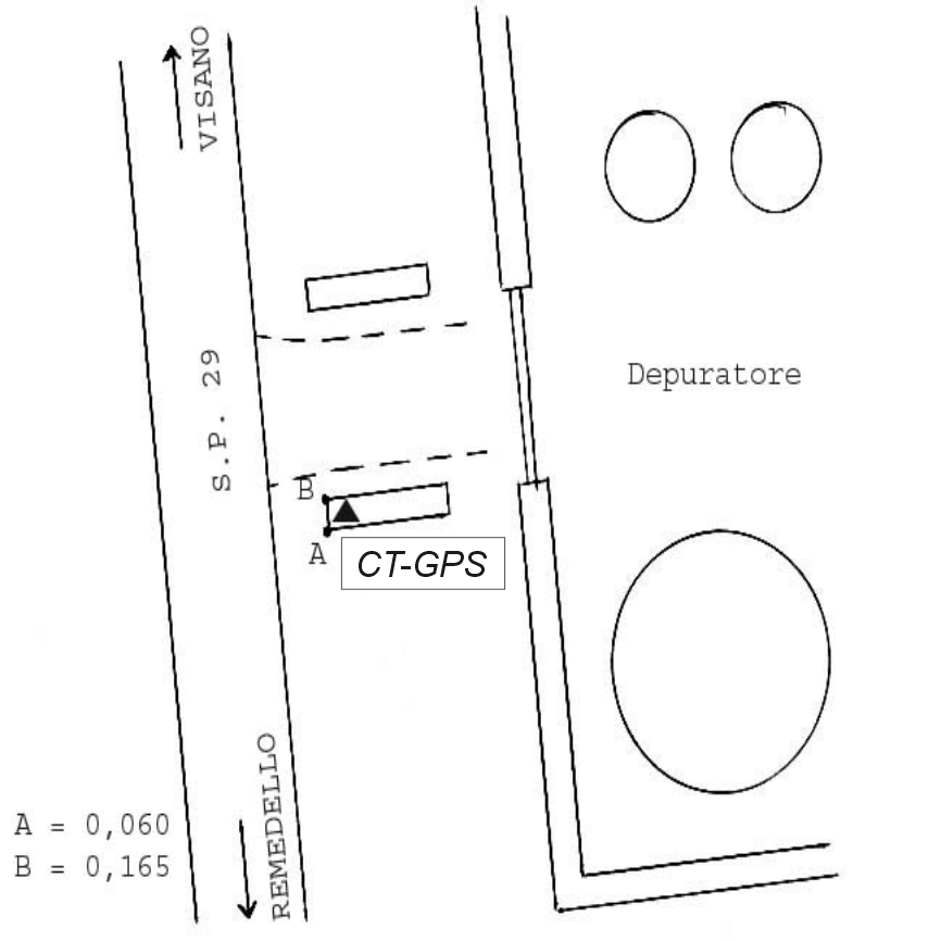 | materializzazione | Centrino Regione Lombardia infisso sullo spigolo sud-ovest del muretto in cemento armato, al Km. 2,800 della S.P. 29, di fronte al depuratore pilota di Visano. |
