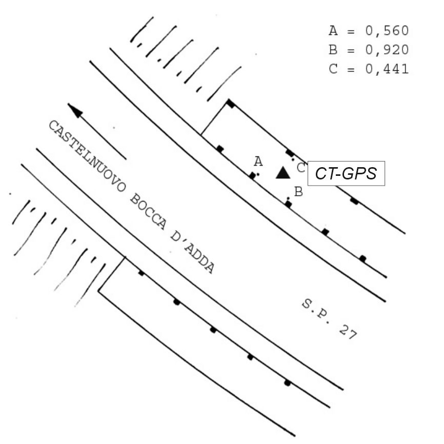 | materializzazione | Centrino Regione Lombardia infisso sullo spigolo sud-ovest del cordolo in calcestruzzo del ponte della S.P. 27, al Km. 21,900, in località Cascina Roma. |