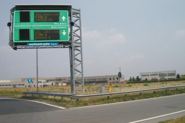 | materializzazione | Centrino Regione Lombardia infisso sul basamento in calcestruzzo del tabellone elettronico antistante il casello autostradale A1 di Casalpusterlengo-Ospedaletto Lodigiano, sull'incrocio che dalla S.S. 234 conduce al casello, ad Ospedaletto Lodigiano. |