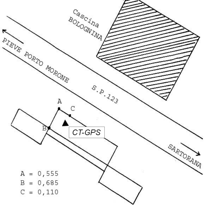 | materializzazione | Centrino Regione Lombardia infisso sullo spigolo nord-ovest del cordolo del tombino in calcestruzzo della S.P. 123, in località Cascina Bolognina. |