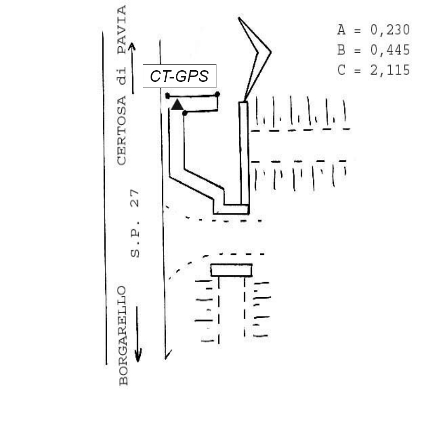 | materializzazione | Centrino Regione Lombardia infisso sullo spigolo nord-ovest del cordolo del tombino della S.P. 27, in località Cascina d'Agosto, nella zona della Certosa di Pavia. |