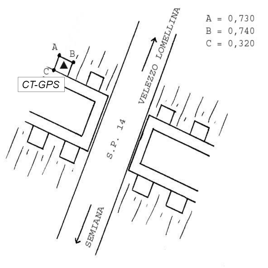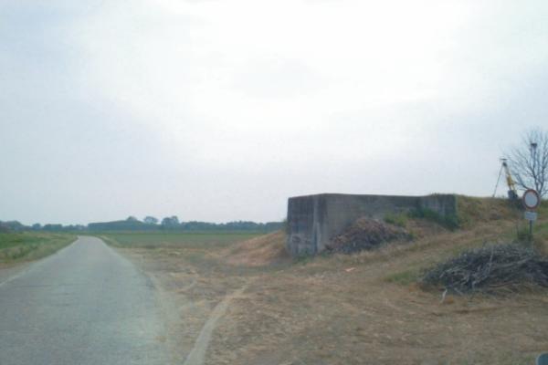 Centrino Regione Lombardia infisso sullo spigolo nord-ovest del cordolo del sifone in cemento armato, in località Velezzo Lomellina.