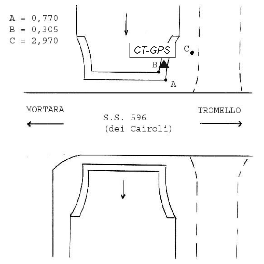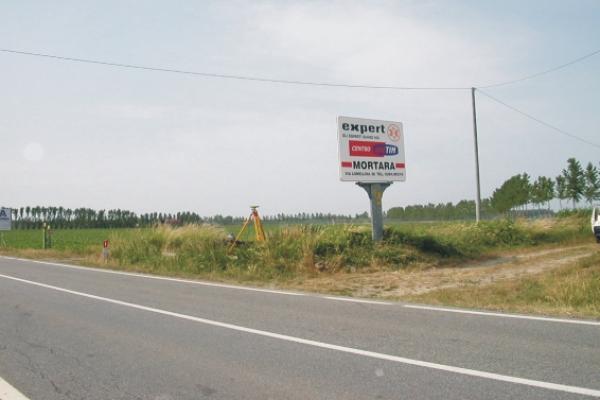 | materializzazione | Centrino Regione Lombardia infisso sullo spigolo nord-est del cordolo in calcestruzzo del tombino della S.S. 596 per l'attraversamento del canale subdiramatore del canale Cavour, al Km. 30,500 della statale, in località Sant'Albino. |