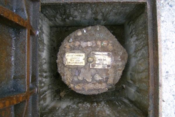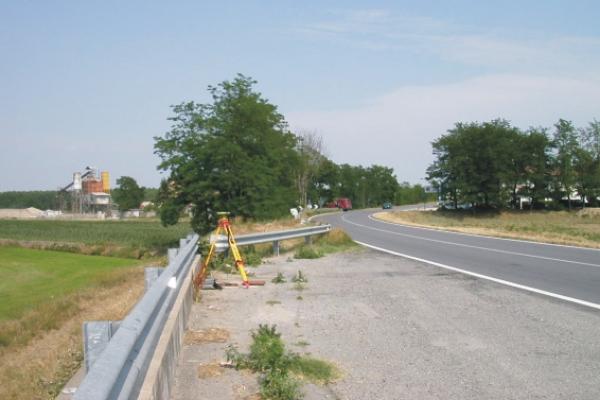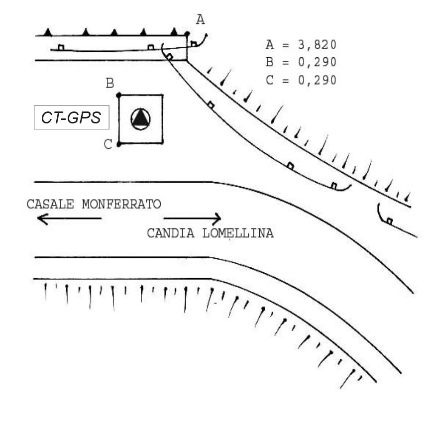 Centrino Regione Lombardia infisso sulla sommità di un pilastrino in calcestruzzo appositamente realizzato, posto all'interno di un pozzetto, ubicato sul ponte della S.S. 596 sul fiume Sesia, in località Candia Lomellina.