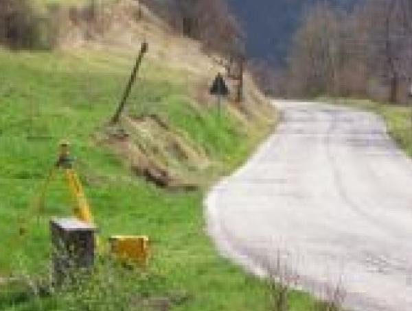 Centrino metallico infisso sullo spigolo sud-est del cordolo in calcestruzzo, lato monte, del tombino della S.P. 471, al Km 6+900.