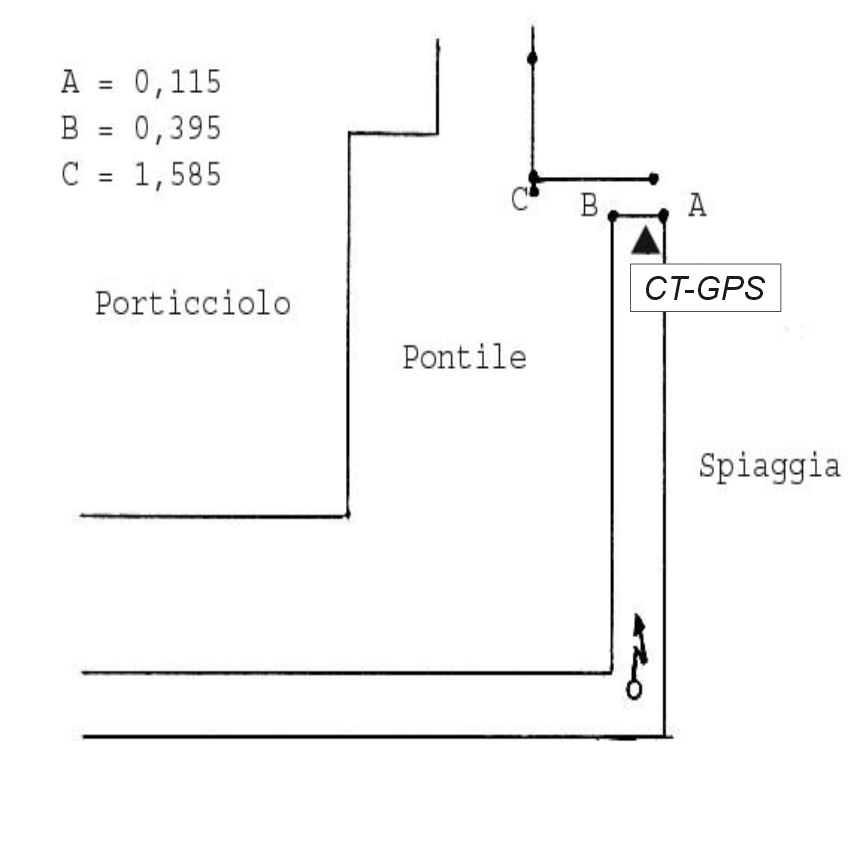 Centrino Regione Lombardia infisso sulla sommità, spigolo nord-est, del parapetto in calcestruzzo del molo di fronte all'Hotel Casinò, in località Gardone Riviera, in corrispondenza del Km. 73,250 della S.S. 45 bis.