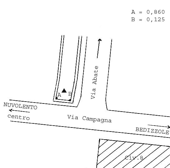 | materializzazione | Centrino Regione Lombardia infisso sullo spigolo est del tombino in calcestruzzo di via Campagna sulla canaletta d'irrigazione, di fronte al civico 8, a Nuvolento. |