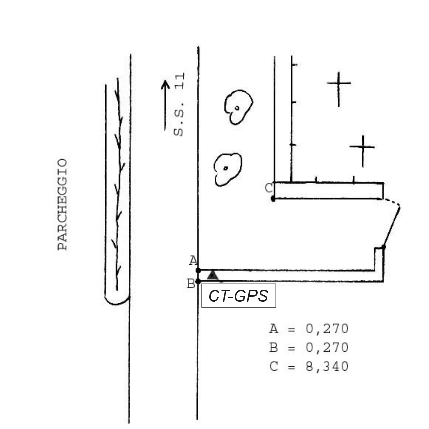 Centrino Regione Lombardia infisso sullo spigolo ovest del muro divisorio in calcestruzzo che delimita a sud la pertinenza del cimitero di Pedrocca, in località omonima.