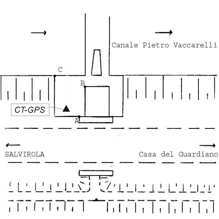 | materializzazione | Centrino Regione Lombardia infisso sulla sommità, spigolo sud-ovest, del manufatto di canalizzazione delle acque in calcestruzzo passante sul canale "Pietro Vacchelli" in località Casa del Guardiano, nella zona del campo sportivo, a Salvirola. |