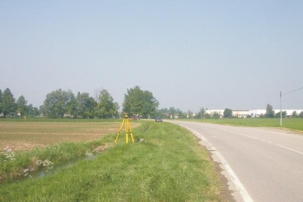 Centrino Regione Lombardia infisso sul cordolo in calcestruzzo del tombino di un accesso campestre sul fosso d'irrigazione, nei pressi della zona industriale ad est di Camisano, lungo la S.P.12, a Camisano.