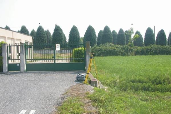 Centrino Regione Lombardia infisso sulla sommità, lato nord, del muro di sostegno in calcestruzzo del parcheggio auto ubicato lungo la S.S. 472, in località Chiesa dei morti, a Casirate d'Adda.