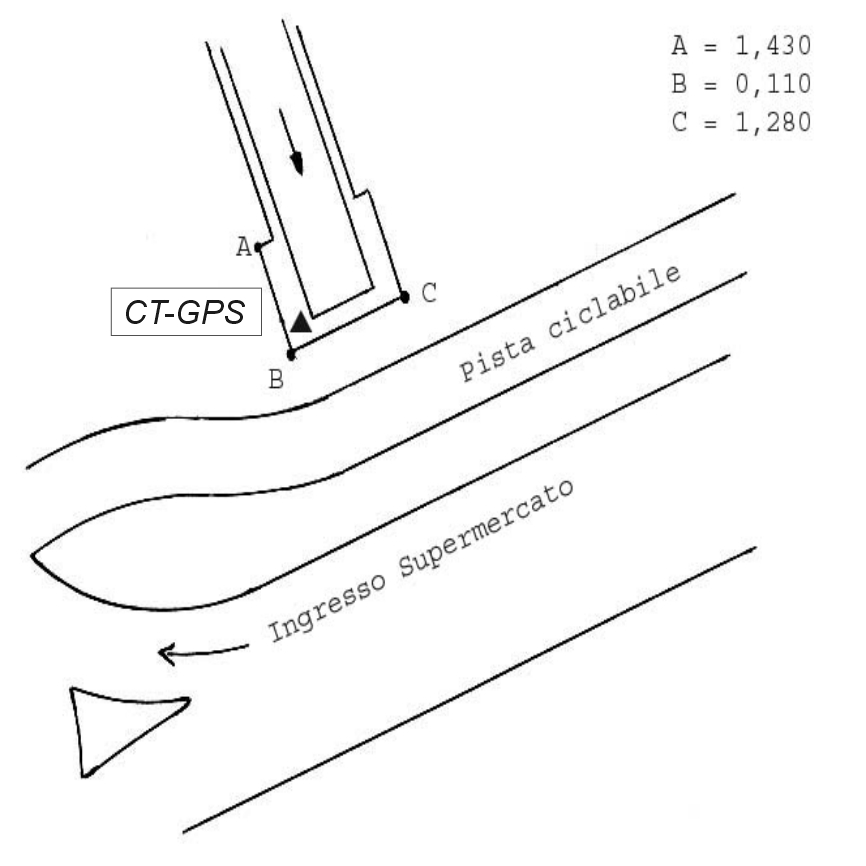 | materializzazione | Centrino Regione Lombardia infisso sullo spigolo sud-ovest del sifone in calcestruzzo della canaletta ubicata lungo la pista ciclabile parallela alla corsia d'accesso al centro commerciale "Cityper" per l'ingresso 1, a Palazzolo sull'Oglio. |